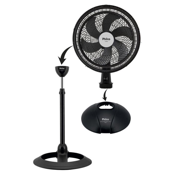 - Ventilador 2 em 1, com base que pode ser trocada para mesa ou coluna