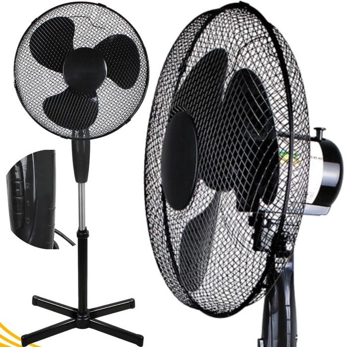 Com 3 velocidades, ajuste de altura e disponível nas voltagens 110v e 220v, esse ventilador possui as seguintes especificações: consumo de 1,56 kwh/mês, frequência de 60hz, cor preta, largura de 41cm, altura de 110cm, material de plástico e aço, hélice tripla, base com 4 pés fixos, rotação máxima por minuto de 1300 rpm e grade de aço.