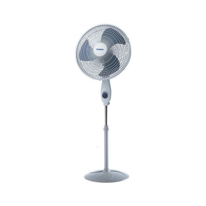 Com três velocidades, cinco pás, inclinação ajustável e altura regulável, protetor térmico, grade removível e acionamento por botão giratório.