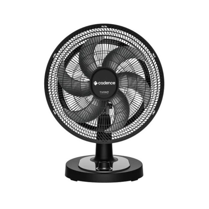 Ventilador Turbo Conforto Mesa e Parede 6 Pás 42cm Preto Cadence VTR470-127A Cadence apresenta o seu maior companheiro para o verão. O Ventilador Turbo Conforto possui 126W de potência, pode ser instalado tanto no chão quanto na parede, possui 3 velocidades e hélice de 6 pás com 42cm de diâmetro. Faça o calor ir embora com o ventilador turbo conforto da Cadence.Possui design exclusivo com sistema Flat click que permite uma montagem fácil, apenas deslizando os encaixes da grade no aparelho, também é super fácil de desmontar para limpeza por exemplo. Além disso possui oscilação de 180° para distribuição de ar e ajuste de inclinação. br /> br /> Especificações Técnicas:- br /> Marca: Cadence br /> Modelo: Turbo Conforto br /> Potência: 126W br /> Eficiência Energética: AAA br /> Rotações por minuto: 1570 a 1640 RPM br /> Ruído Máximo: 64dB br /> Hélice: 6 pás - 42 cm de diâmetro br /> Fixação na Parede: Sim br /> br /> Dimensões br /> Altura: 65 cm br /> Largura: 50 cm br /> Profundidade: 38 cm br /> Peso: 3,35 Kg br /> br /> Garantia do fornecedor de 12 meses