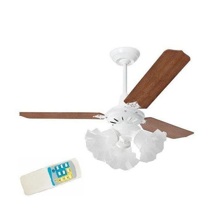Ventilador de Teto 3 Lâmpadas Tulipa Branco Loren Sid Pás Mogno com Controle Remoto - 220V
