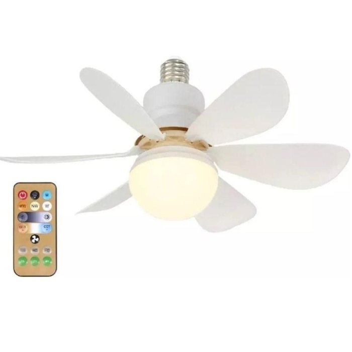 Ventilador de Teto com Lâmpada Led e Controle Remoto para Bocal E27 Branco