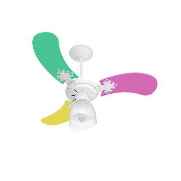 Características complementares: Qualidade - Produzido com materiais diferenciados e de qualidade que garantem maior durabilidade e resistência ao produto. Produto - Ventilador de Teto; - Conta com 3 pás para melhor ventilação; - Abrange uma área de 20 metros quadrados; - Possui cores alegres e atraentes; - Com lustre em forma de taça deixa o ambiente com toque de sofisticação; - É compatível com 1 lâmpada eletrônica de até 15W ou 1 LED de até 10W; - Super compacto, é ideal para pequenos ambientes; - Potência de 130 W; - Rotação máxima de 180 a 460 rpm; - Conta com controle de velocidade; - Possui função de ventilação e exaustão; - Prático e fácil de usar; - Perfeito para completar o quarto do seu filho; - Com design moderno e cores atraentes e vibrantes deixaram o ambiente mais alegre com charme extra e sofisticação; - Ideal para facilitar o seu dia a dia e refrescar o quarto do seu pequenino!