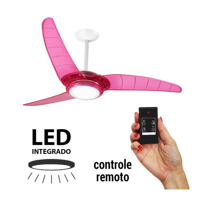 Ventilador de Teto Spirit 303 Rosa Neon LED Luz Branca Controle Remoto 220V Rosa