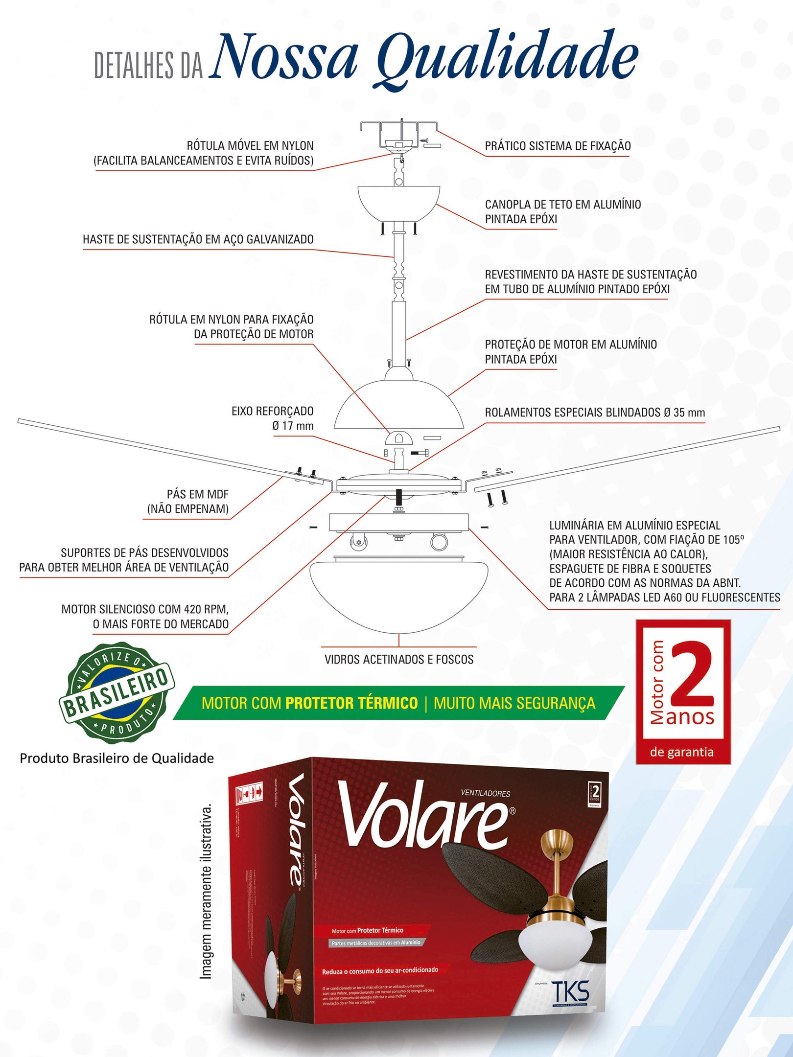 | Itens Inclusos | 1 Ventilador de teto, 1 Chave de parede e Manual de instruções. |