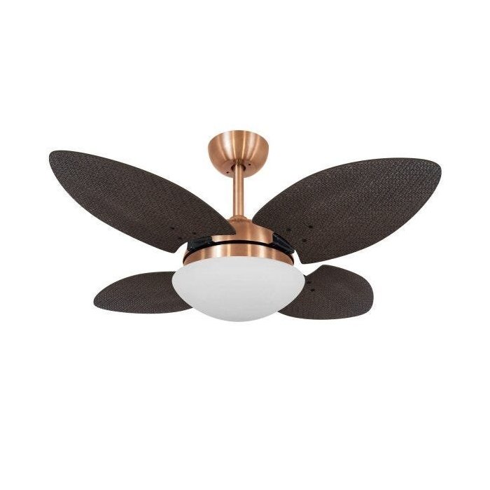 Ventilador de Teto Vidro Fechado 4 Pás Mini Pétalo Palmae Volare 220V Cobre/Marrom Tabaco
