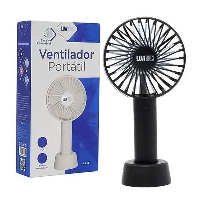 É muito prático e versátil de usar para se refrescar seu ambiente de trabalho, estudo ou até mesmo secar a sua maquiagem. Pode ser usado na mesa ou prateleira tendo um longo tempo de uso. Ideal para ser usado por maquiadoras e extensionistas de cílios, até mesmo no dia dia. Fácil de ser transportado e bateria duradoura. Informações Técnicas: Material: ABS Fonte de entrada: DC5V- 1.0A Tipo de bateria: 3.7v Potência: 3-7w 3 VelocidadesItens Inclusos: 1x Mini Ventilador de Mão Portátil [Preto] 1x Cabo USB 1x Adesivo Emborrachado Para a Base