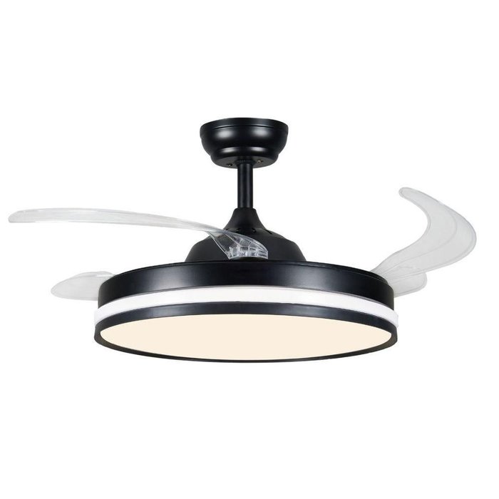 Ventilador Retratil Teto Controle Remoto Led 4 Pás Fresh Wind Preto Preto
