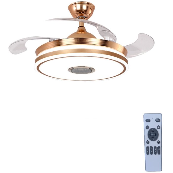 Ventilador de Teto Retrátil Led Com Controle Remoto e Som Bluetooth Dourado