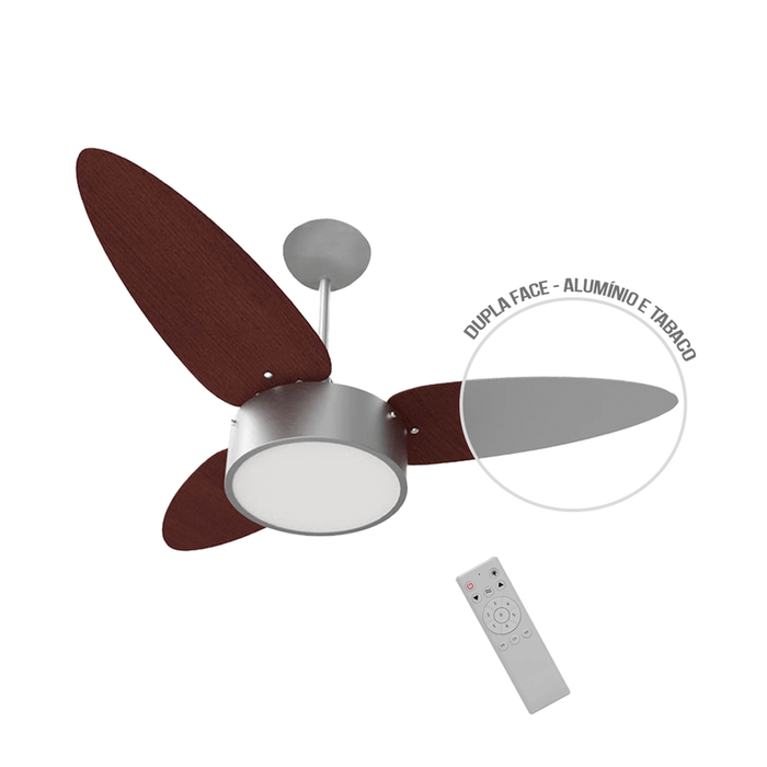 • Pás em MDF dupla face: Na hora da montagem pode se escolher o lado da cor que ficará para baixo. Cores das pás: Alumínio ou Tabaco