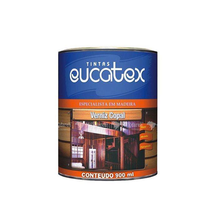 Eucatex Verniz Copal é um produto de fino acabamento brilhante e natural, de fácil aplicação, elevado poder de penetração, rápida secagem, alto rendimento e grande aderência ao substrato. É indicado para superfícies internas de madeira, como portões, portas, corrimãos, balcões, móveis, forros etc.
