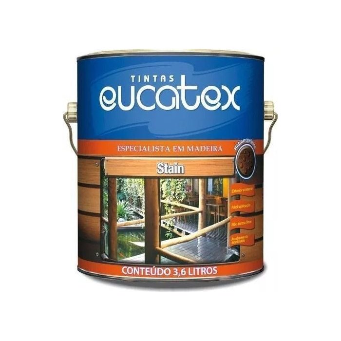 Descrição: Eucatex Stain oferece alta performance e máxima tecnologia no tratamento e proteção de madeiras novas, externas e internas. Sua fórmula diferenciada é hidrorrepelente e penetra nas fibras da madeira sem formar filme, o que impede possíveis trincas, descascamentos ou aparecimento de bolhas. É indicado para proteção e decoração de casas de madeira, portas, janelas, lambris, deques e madeiras decorativas em geral. O acabamento acetinado valoriza ainda mais os veios naturais da madeira e, em conjunto com o filtro solar presente na composição, garante inigualável durabilidade..
