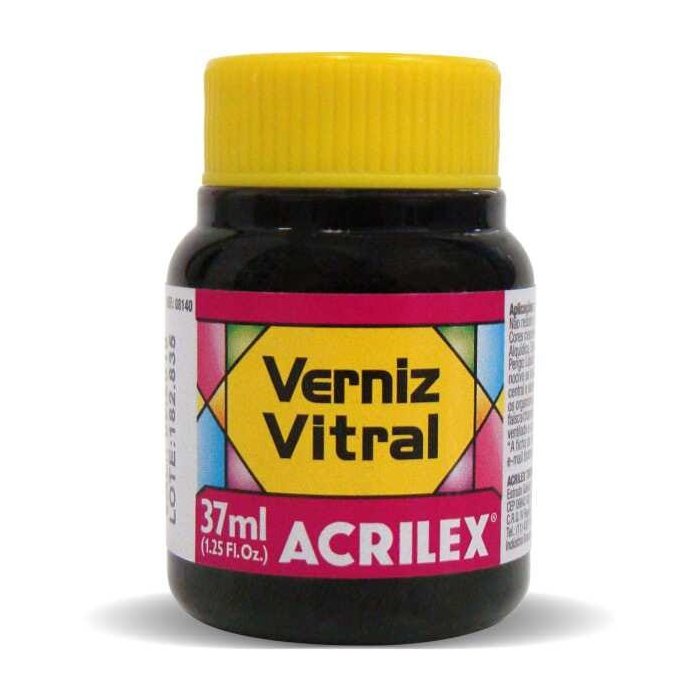 VERNIZ VITRALCARACTERÍSTICASTodas as cores são miscíveis entre sí (inclusive Verniz com Esmalte Vitral).Para efeito decorativo.Pronto para uso.MODO DE USARAplicar com pincel de pelos suaves curtos ou redondos, espalhando ou gotejando sobre as pças limpas e desengorduradas. Deixar secar completamente por 24 horasACESSÓRIOSDiluentes: Solvente ou Thinner Acrilex.Acessório: Pasta Relevo Vitral AcrilexO Verniz Vitral apresenta acabamento transparente e brilhante.Indicado para vidro, cerâmica, porcelana e faiança, pode-se imitar efeito de vitrais trabalhando com Pasta Relevo Vitral. Para fins exclusivamente decorativos.