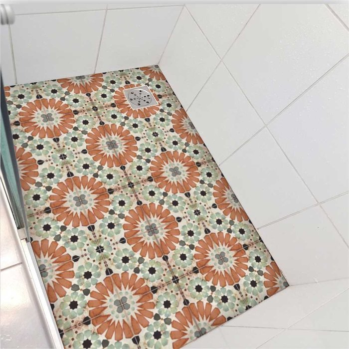 Vinil Adesivo Piso Box Marrocos Antiderrapante Colacomigo Adesivo para Box 1,20 X 0,97 Metros Tons laranja e verde