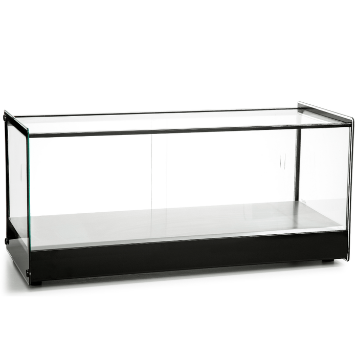 Fabricada com estrutura em alumínio anodizado e aço inox, prateleiras resistentes e vidros temperados tratados termicamente, essa vitrine oferece segurança e durabilidade. Os vidros laterais com serigrafia adicionam um toque elegante ao design clean e compacto, valorizando ainda mais seus produtos.