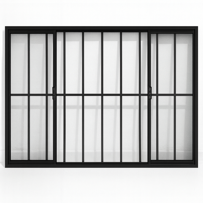 Vitrô 4 Folhas de Correr Aluminio Preto com Grade 1,00x1,20