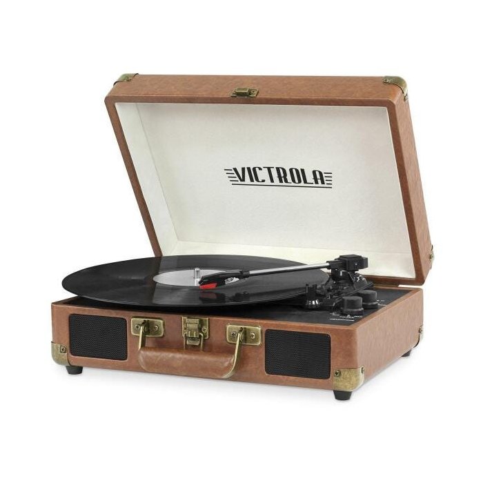 Reproduza facilmente o seu áudio favorito a partir de um disco de vinil, bluetooth ou cabo aux-in de 3,5 mm através dos nosso alto falantes incorporados. Também possui um fone de ouvido para audição privada