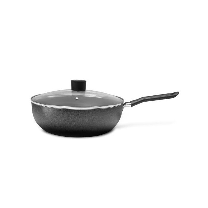prática e Segura, a Wok com Tampa da Linha Ebony, com 24 Cm e Capacidade de 3,2 Litros, Tem Estrutura de Alumínio Que Dissipa Melhor o Calor, Cozinhando o Alimento por Igual e Mais Rapidamente. Já o Revestimento Interno Antiaderente Não Deixa o Alimento Grudar Mesmo com Uso Reduzido de Óleo. de Quebra, o Material Também Facilita a Limpeza. a Tampa É de Vidro Temperado e Possui Saída para o Vapor. com Cabo de Baquelite, Material Que Não Aquece, o Manuseio da Panela, Fica Mais Fácil e Seguro. a Pintura Externa É na Cor Preto Brilho Trazendo Maior Versatilidade e Sobriedade para a Sua Cozinha.