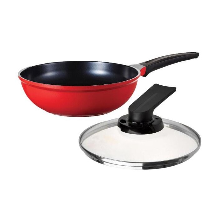 Wok com Revestimento Cerâmico Vermelho Ø 30 cm Tampa Vidro