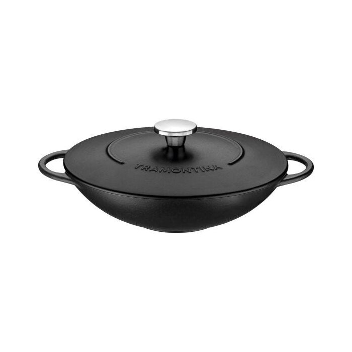 Wok Tramontina Trento em Ferro Esmaltado com Revestimento Interno em Antiaderente Starflon Preto