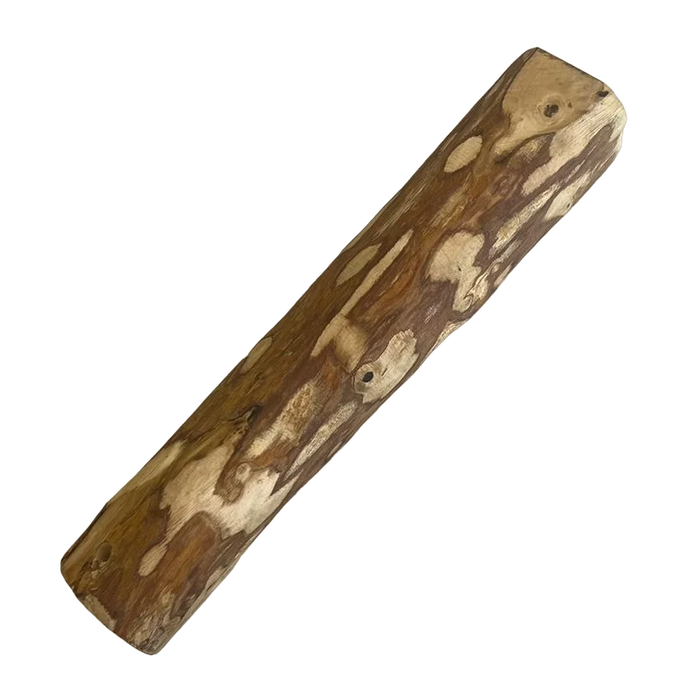É um tipo de madeira que não soltar pedaços e farpas perigosas. E os pedacinhos que sairem conforme o cão roer, farão bem para ele. A celulose que contém na madeira ajuda na digestão do seu pet! E é finalizado com óleo de coco que ajuda a atrair seu pet, além de também trazer benefícios!