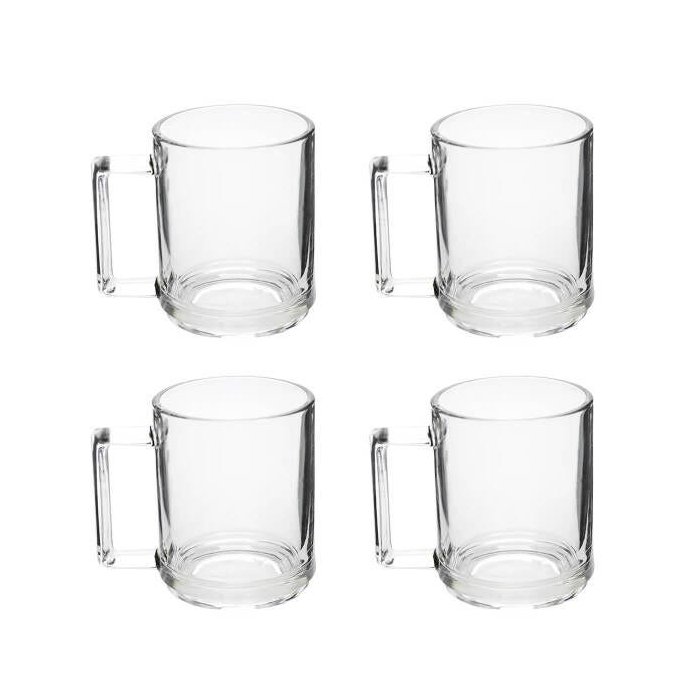 Xícara Caneca Alça Quadrada de Vidro 250ml com 4 Peças