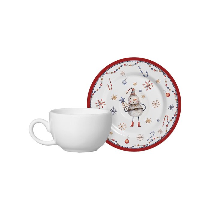 Xicara Chá C/pires Natalina Grettings 200ml (9506001) Branco, Vermelho, Azul, Bege