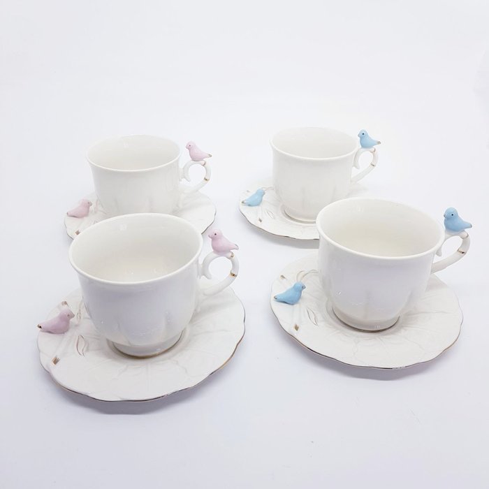 Xícara Chá com Pires Porcelana Birds Round 4 peças Wolff 200ml