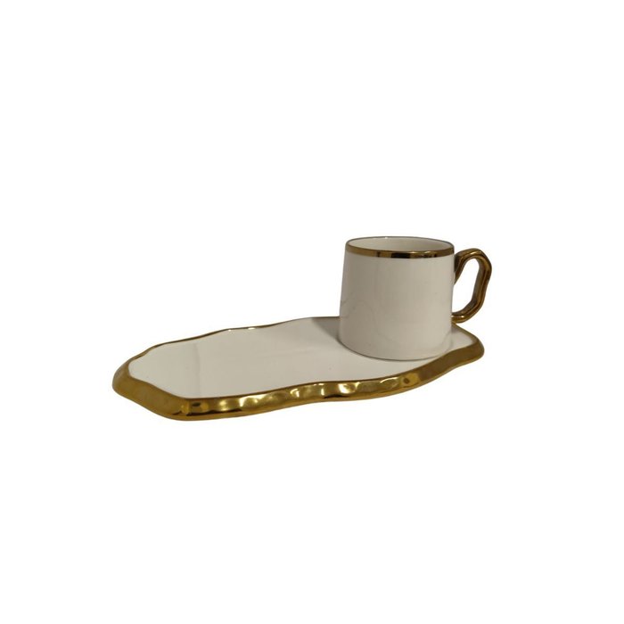 Xícara Chá Orgânica Cerâmica com Pires 280ml Borda Dourada dourado