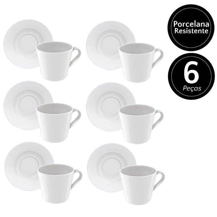 Xícara com Pires para Chá Leonora de Porcelana 185ml 6un - Tramontina 96010/237