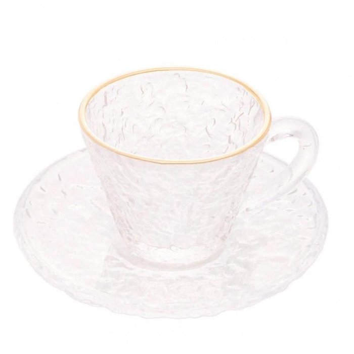 Xícara De Café Petra Cristal Ecológico Com Pires E Borda Dourada 70ml