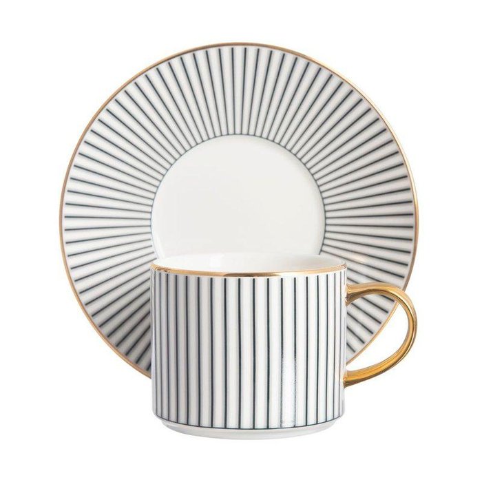 A Xícara de Chá Jazz possui capacidade de 250 ml é desenvolvida 100% em porcelana, apresenta estampa de listras e foile dourado que atribui charme à peça. Vem com um pires, tornando o conjunto mais harmonioso, ideal para criar momentos ainda mais receptivos.