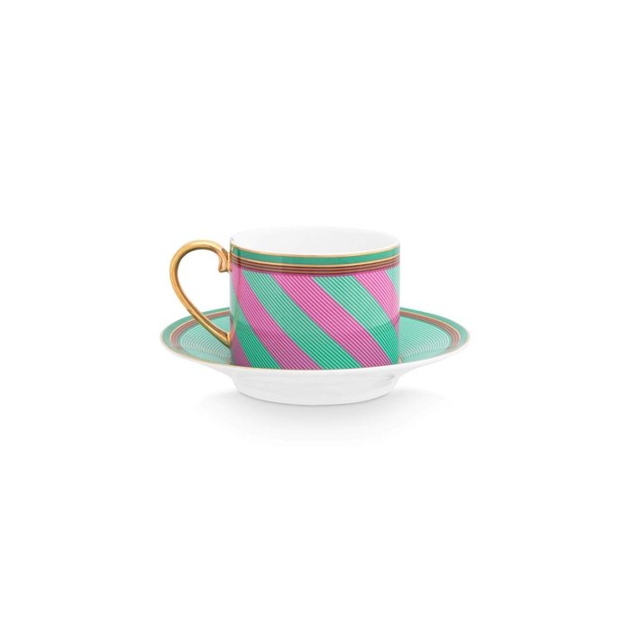 Xícara de Chá Pip Chique Stripes Rosa e Verde - Pip Studio ( Pré Venda)