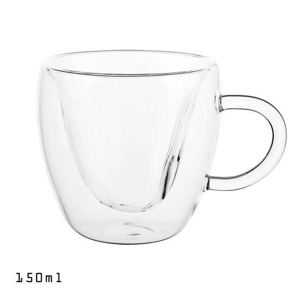 1x Xícara vidro duplo em formato de coração 150ml Garantia