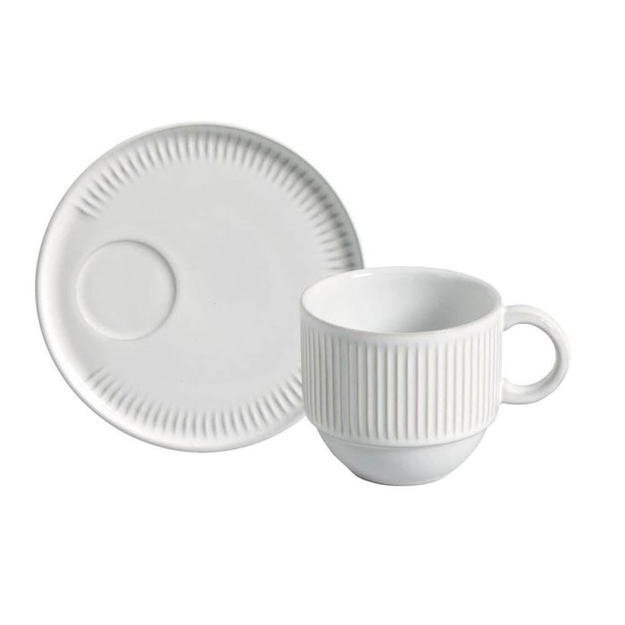 Xícara para Chá 230ml com Pires Cerâmica New White Porto Brasil Branco