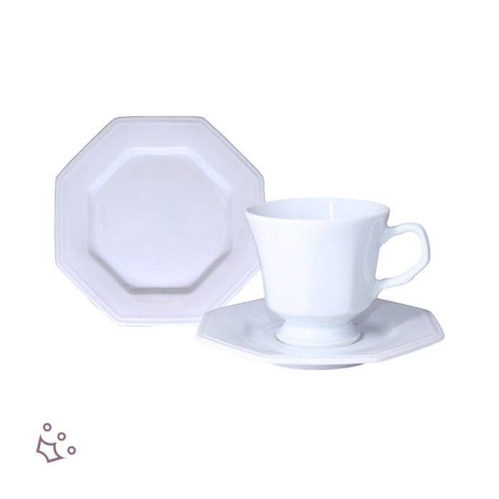 Xicaras Chá e Prato Sobremesa Prisma 36pç Porcelana Schmidt