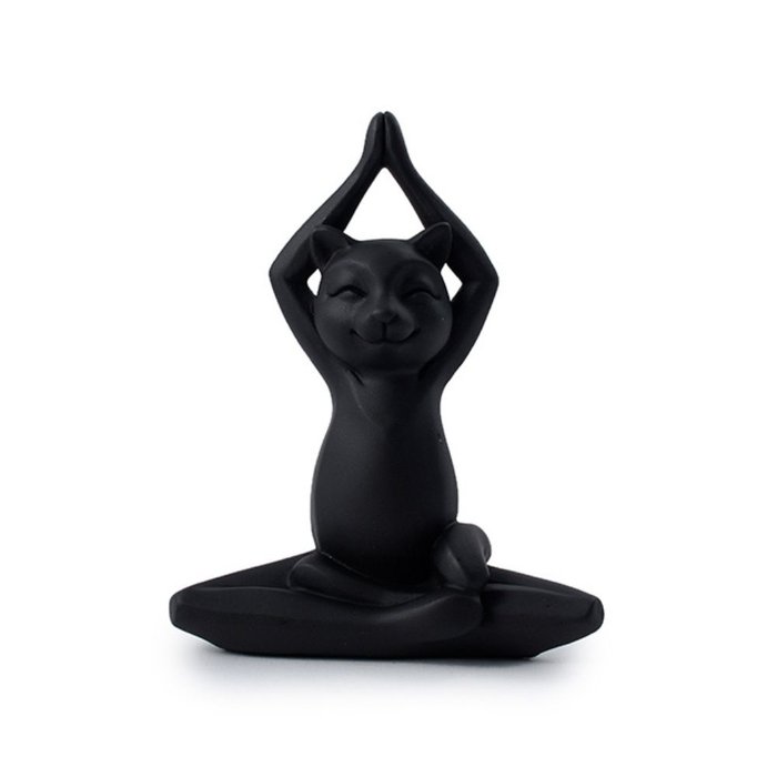 Yoga cat preto em resina 11x15x5 cm