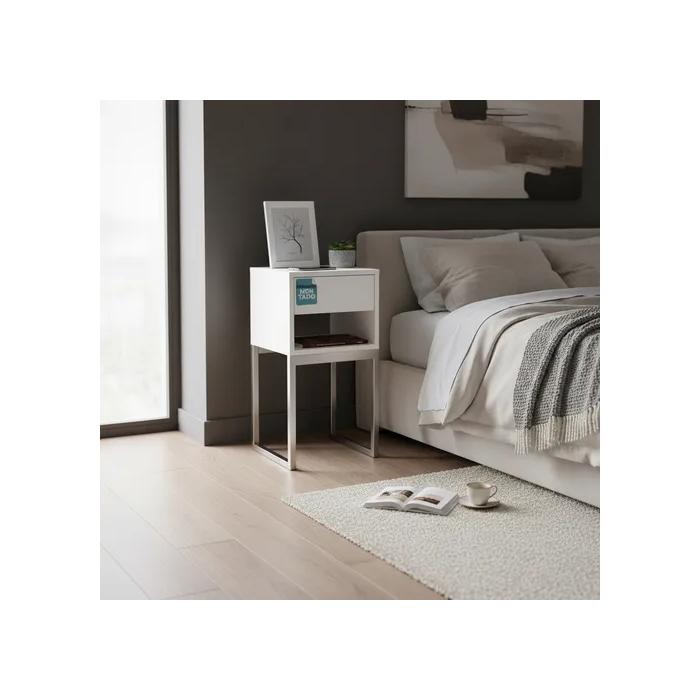 Se você busca um móvel com design moderno, acabamento clean e espaço funcional, essa mesa de cabeceira foi feita pra você.