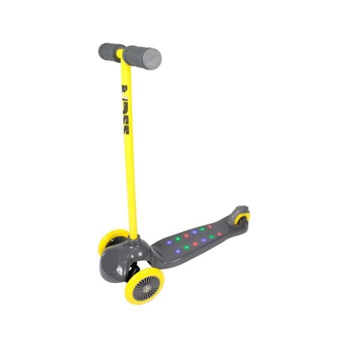 Zumm Patinete 3 rodas com led Desenvolve a coordenação motora e equilíbrio Estrutura resistente Freio traseiro Luzes Led no deck Base antiderrapante Manoplas de espuma Três rodas de PVC (2 dianteiras: 125 mm e 1 traseira: 100 mm) Peso máximo: 40 kg Funciona com 4 pilhas AAA (Não Incluídas) Medidas aproximadas do produto montado: 58 x 13 x 67,5 cm Indicado para maiores de 3 anos